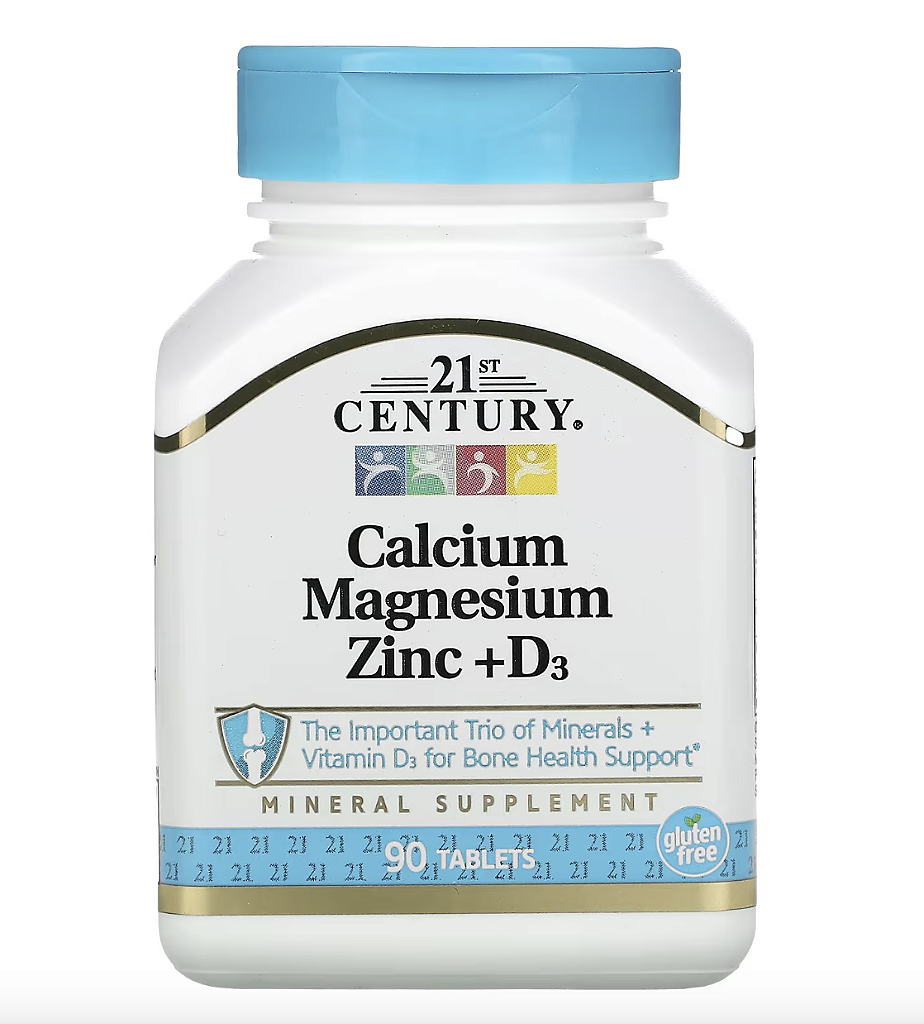 Cálcio, Magnésio e Zinco, um importante trio mineral mais D3, auxilia ossos, músculos e sistema imunológico.