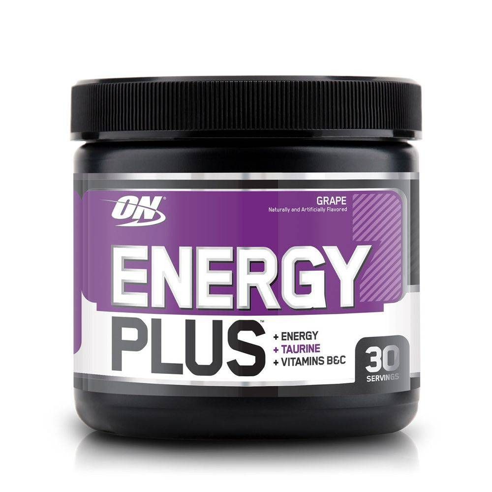 Energy Plus Optimum Nutrition contém 1,3g de taurina, 600mg de glucoronolactona e 150mg de cafeína, além de ser rico em vitaminas do complexo B, Vitamina D, Vitamina C antioxidante e zero açucares em uma porção.