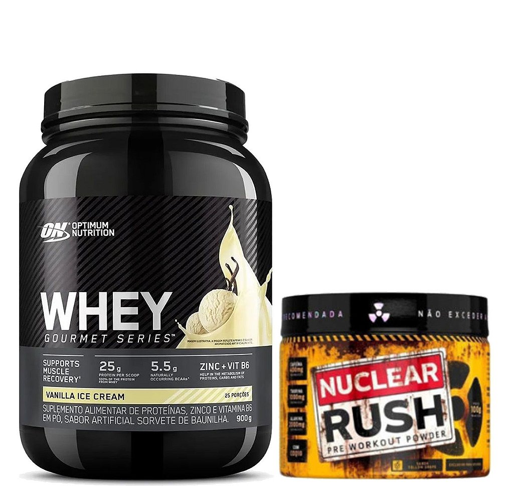 WHEY GOURMET ON 900 GR + NUCLEAR RUSH 100GR (BODYACTION) - OPTIMUM NUTRITION